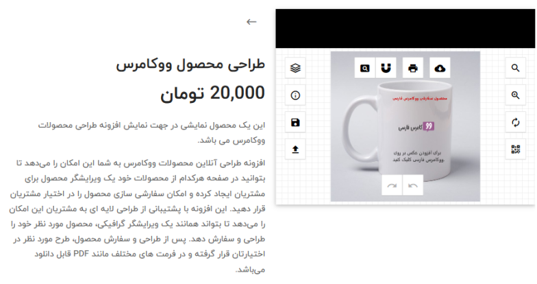امکانات افزونه افزونه طراحی آنلاین محصولات ووکامرس